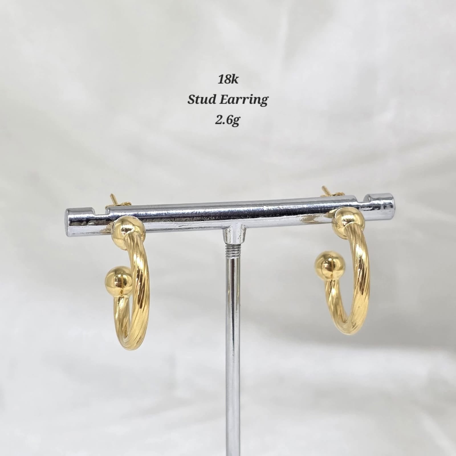 Discover the perfect blend of comfort and style with these 18k yellow gold half-hoop stud earrings. Featuring a delicate twisted rope texture, each earring is finished with a polished gold ball at the open end for a modern, elegant touch.