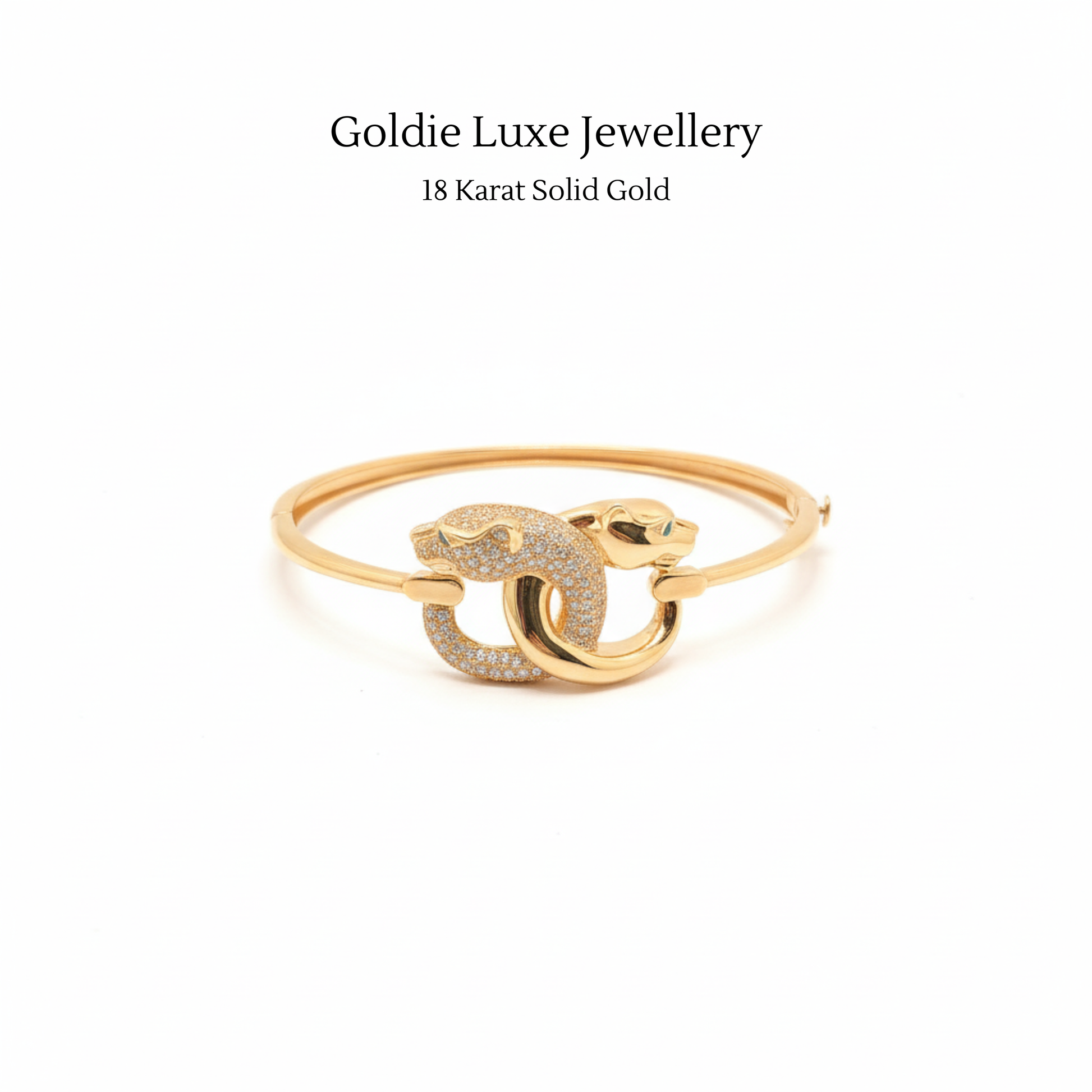 Panthera Embrace Bangle, crafted from luxurious 18-Karat Solid Gold, a statement piece that blends strength and elegance.